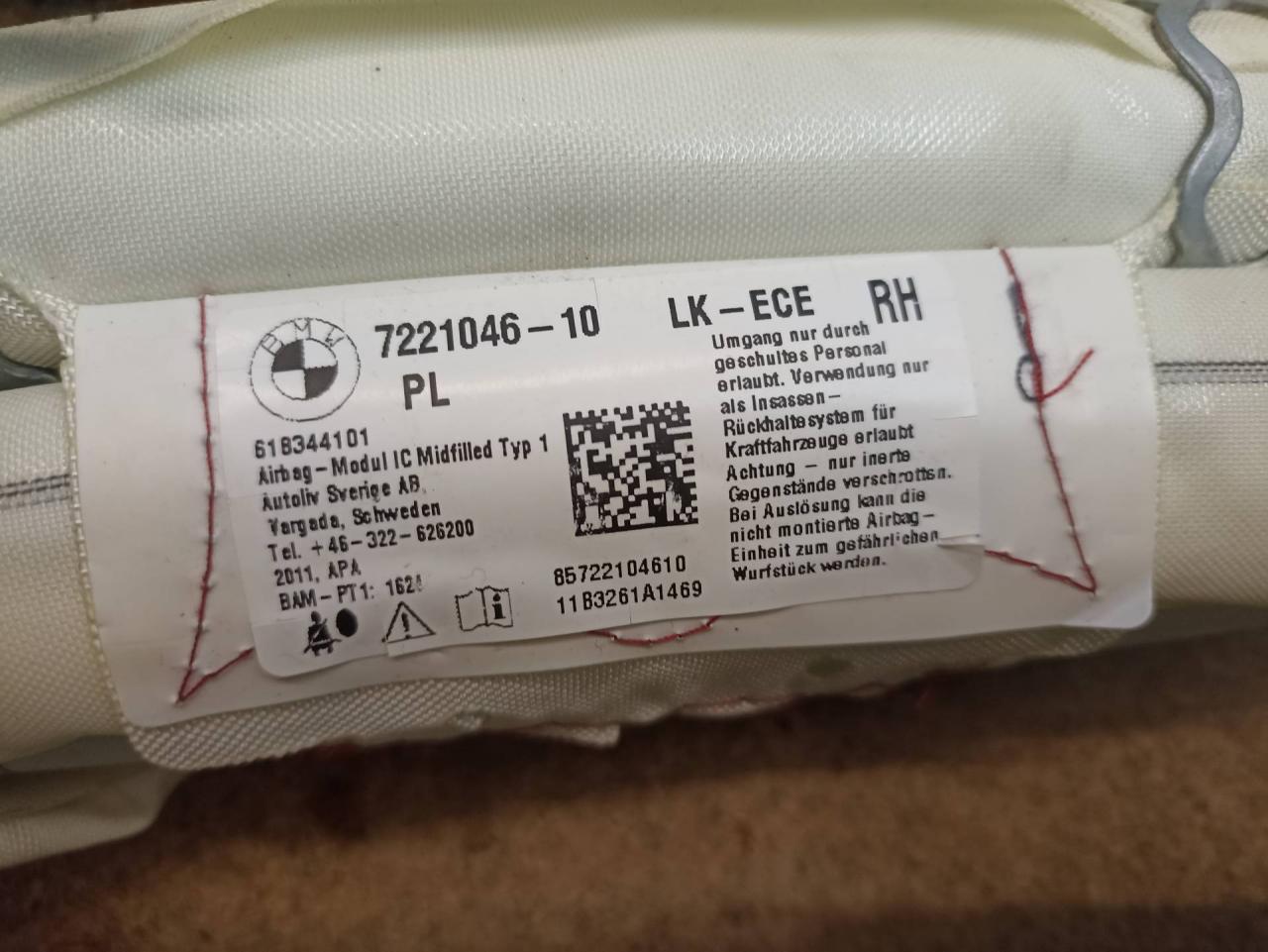Головная подушка безопасности левая. В наличии комплект (левая + правая). Цена за 1 шт. Применяемость: 1' F20, 1' F20 LCI, 1' F21, 1' F21 LCI, 3' F30, 3' F30 LCI, 3' F80 M3, 3' F80 M3 LCI, 3' F31, 3' F31 LCI, 4' F36 Gran Coup, 4' F36 Gran Coup LCI.